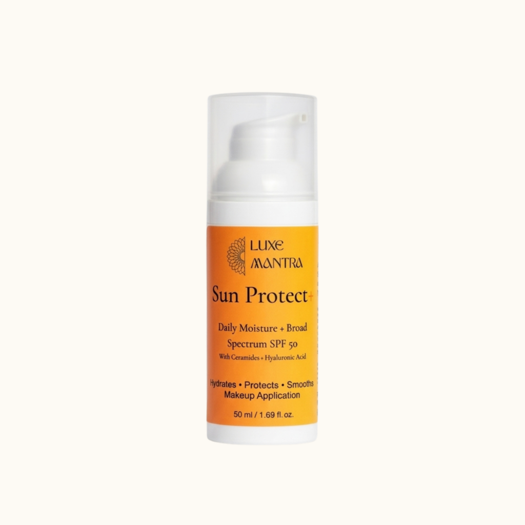 Sun Protect+ combines broad-spectrum UV filters with barrier-support ingredients like Ceramides, Cholesterol, Hyaluronic Acid, and Glycerin to help protect skin from daily sun exposure while maintaining hydration and barrier comfort.