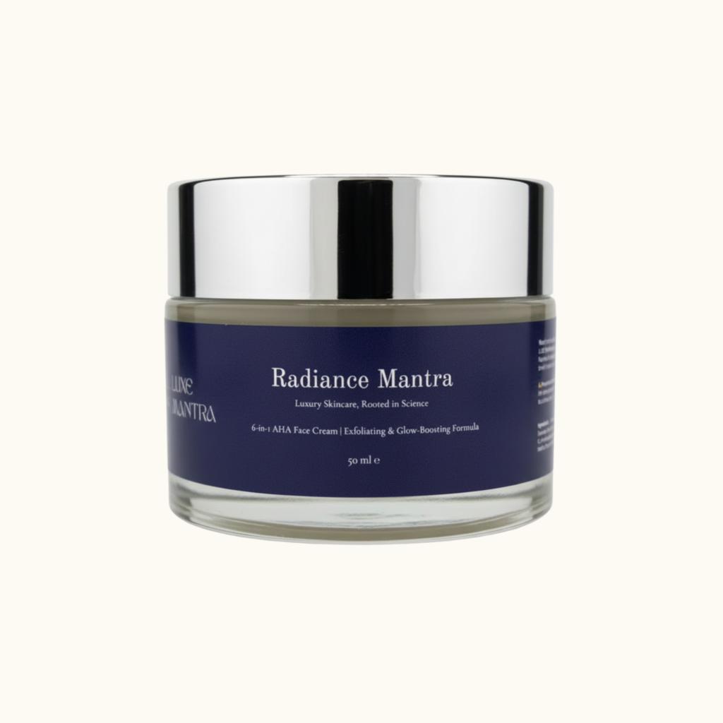 Radiance Mantra is a multi-acid renewal cream designed to improve skin texture, clarity and brightness.